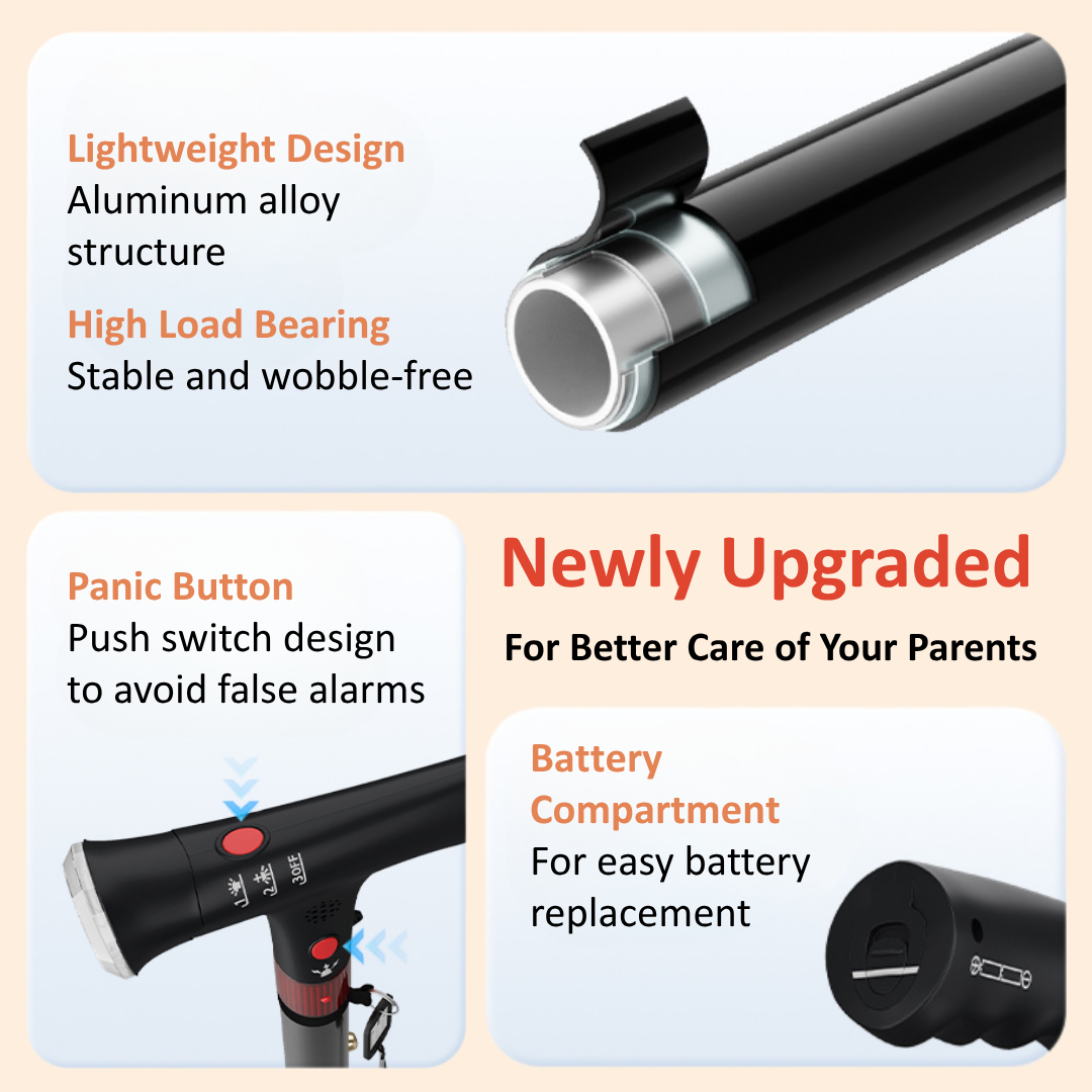 - Sound & Light Alarm: Emergency alert system emits both sound and light to attract attention in case of falls or urgent needs.